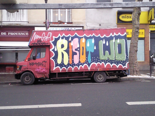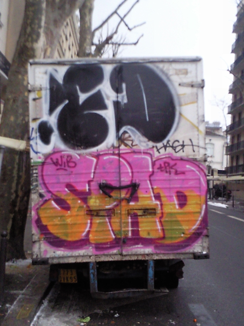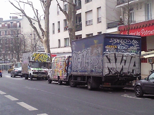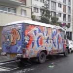 As well as going to the ‘Born in the streets exhibition’ (see review here), I wondered around the 20th district in Paris where I snapped up the vans below. Art on wheels. Love it.