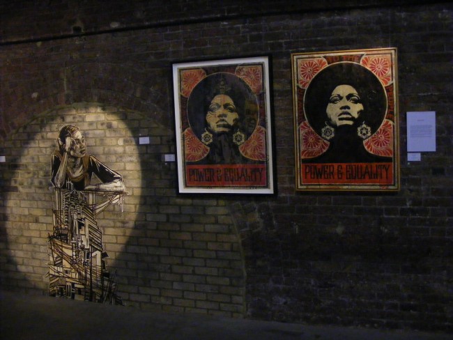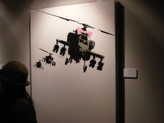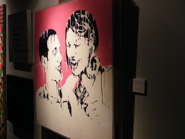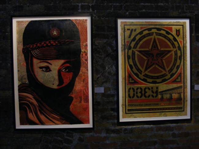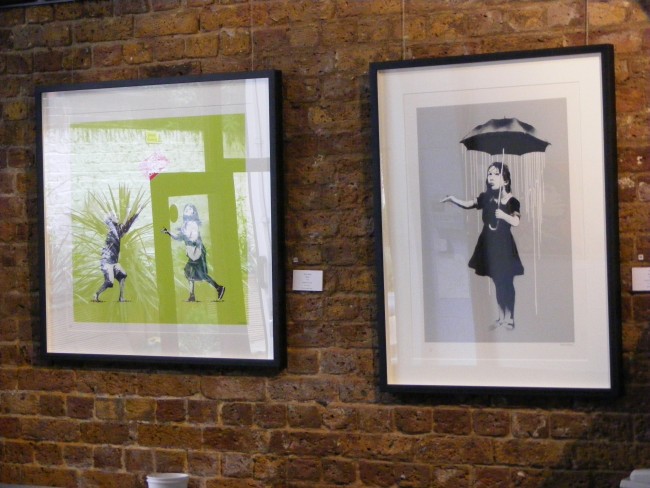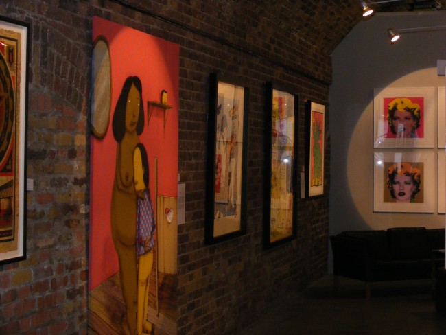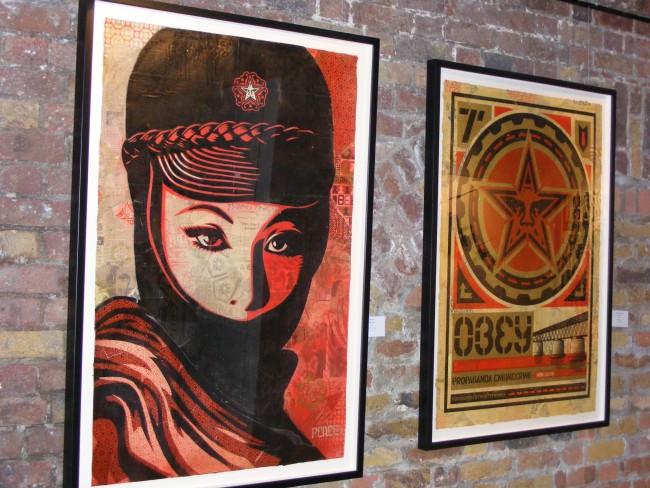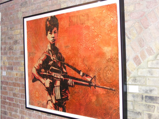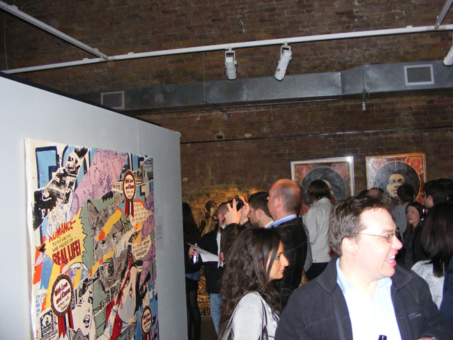 I headed up to the opening night to Black Rat Gallery with great expectations and they were all fulfill. Great turn up, the place was heaving. Great to see stencils and screenprint from Banksy right next to some Fairey’s. All the pieces you have seen on the Internet, in magazines or blogs are here.