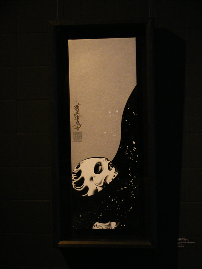 After a while looking at all these skulls figures, I must say I finally agree with the people at Stolen Space that somewhere Usugrow has been able to make beautiful what could at first sight be miles away from it. Not to mention the Asian style calligraphy that if anything do enhance the whole thing.