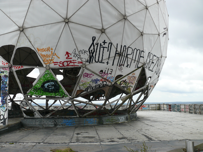 In the centre of Grunwald Forest in the former West Berlin is an artificial mountain, Teufelsberg, made by man using the rubble from approximately 400,000 buildings that were destroyed in WWII. The structure that sits on top is ‘The Listening Station’ built by the US National Security Agency to spy on the Soviet’s. .
